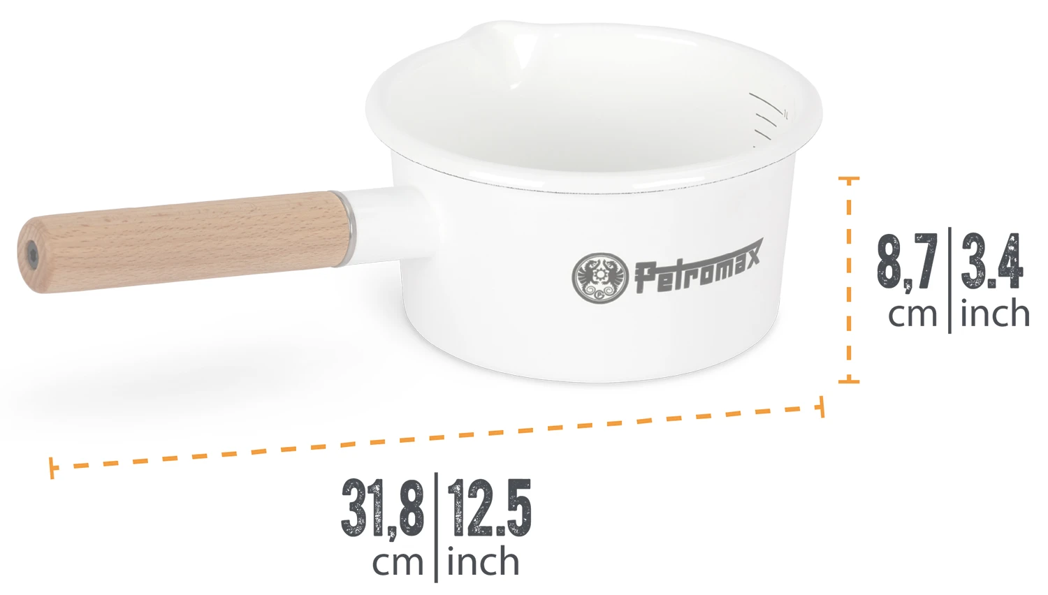| Bezeichnung: | Petromax Emaille Stieltopf / 1000 ml / weiß |